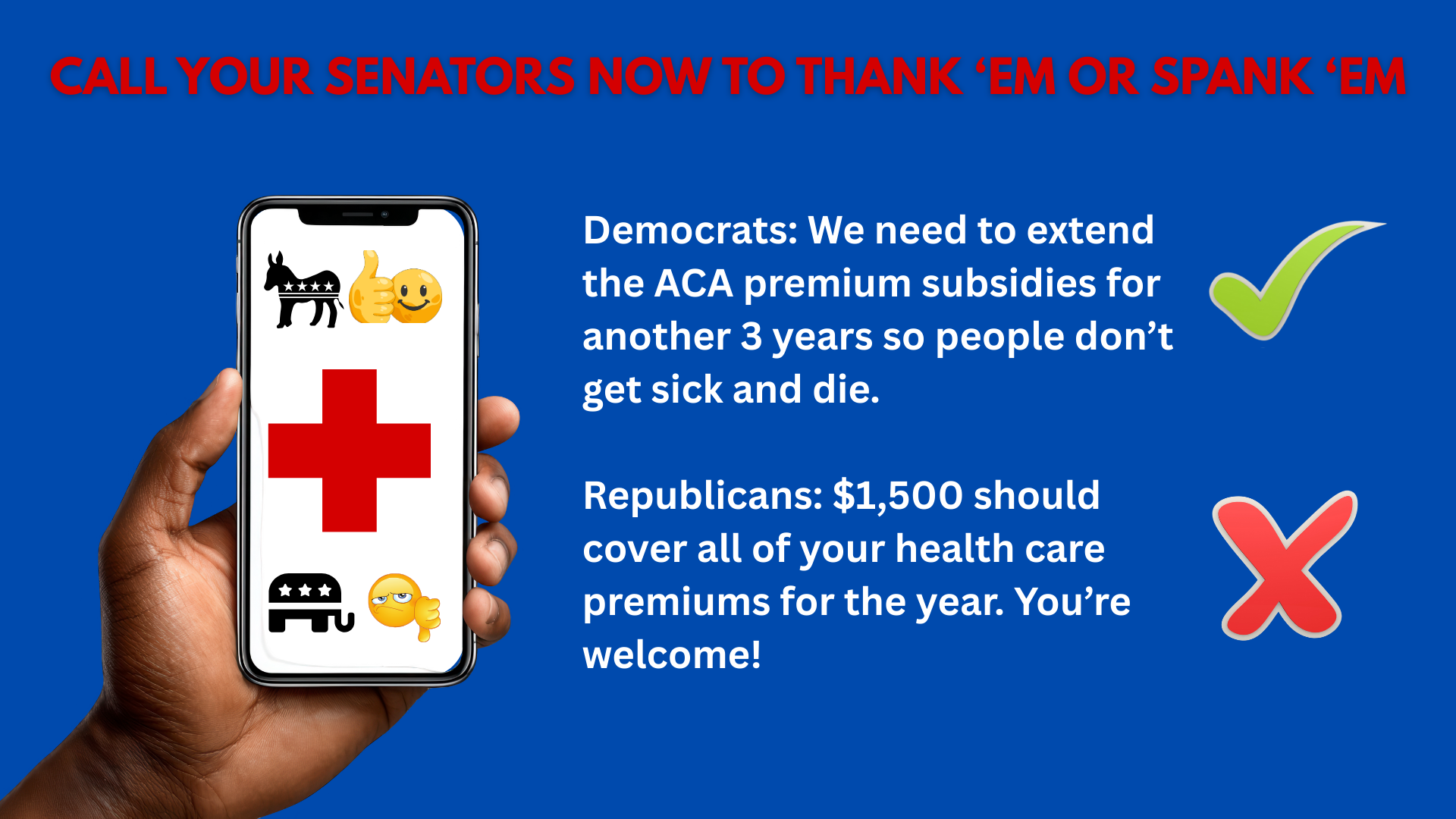 Call to Thank or Spank Your Senators for Their Votes on Healthcare Subsidies